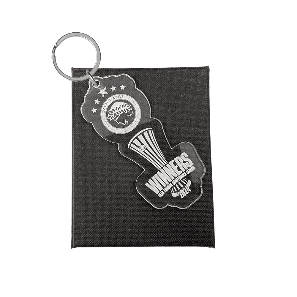 Είναι ένα ειδικά σχεδιασμένο αξεσουάρ για τους φίλους της ομάδας. Κατασκευασμένο από διάφανο ακρυλικό υλικό, το μπρελόκ παρουσιάζει το λογότυπο του Ολυμπιακού, ενώ τα αστέρια που αντιπροσωπεύουν τα πρωταθλήματα. Στην κάτω πλευρά του μπρελόκ βρίσκεται το κύπελλο conference που κέρδισε πρόσφατα η ομάδα, αποτελώντας ένα σύμβολο για την επιτυχία και την περηφάνια των φιλάθλων.