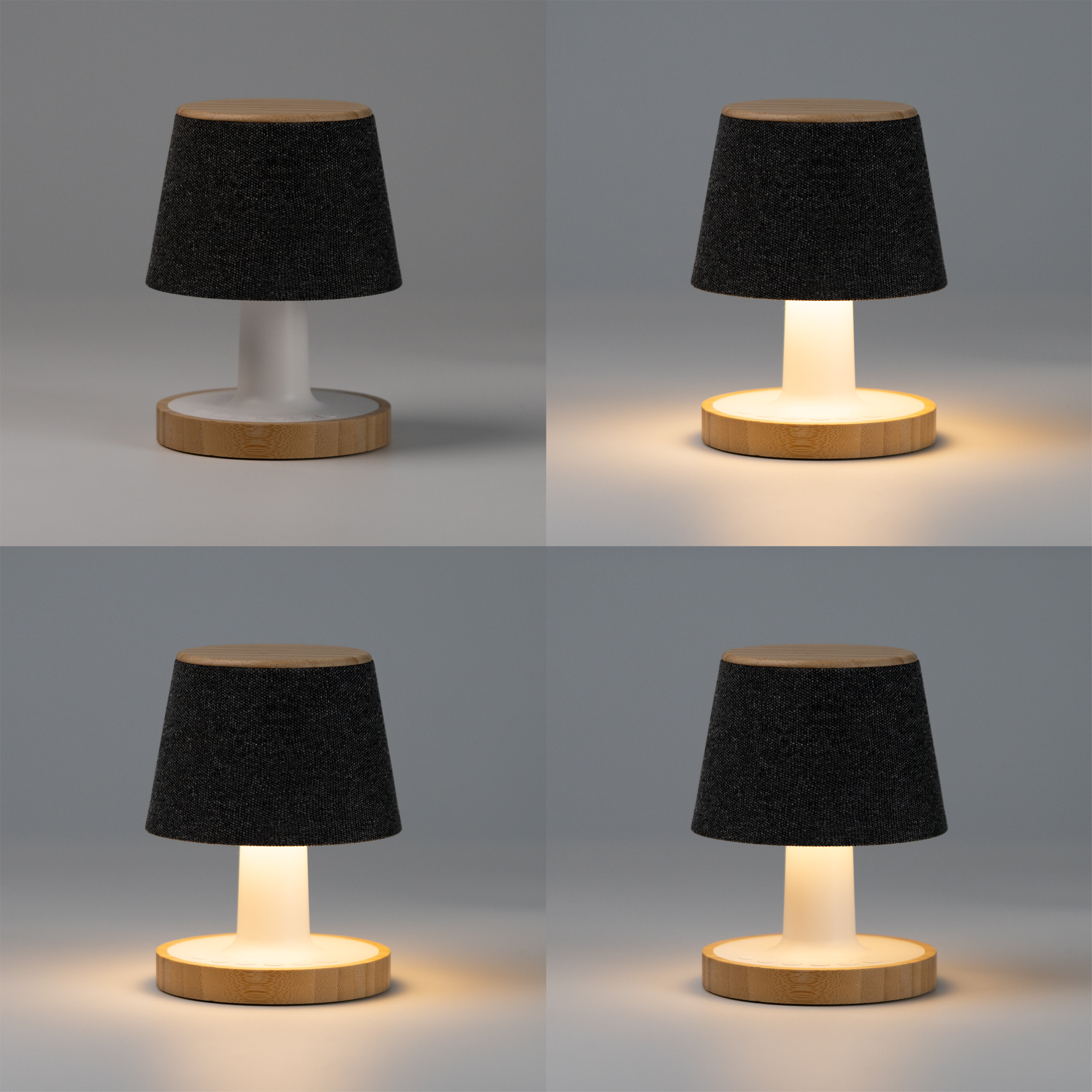 Κατασκευασμένο από ανακυκλωμένο πολυεστέρα (R-PET) και φυσικό bamboo, συνδυάζει αισθητική, τεχνολογία και περιβαλλοντική ευαισθησία. Διαθέτει τριπλό φωτισμό LED (λευκό, ουδέτερο, θερμό), 6 ήχους χαλάρωσης και Bluetooth 5.3 για εύκολη σύνδεση με κινητό ή tablet.