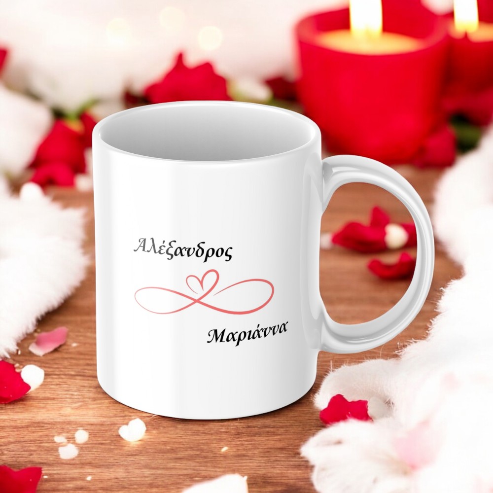- Ονόματα: Συμπεριλάβετε τα ονόματά σας κάνοντάς την κούπα ακόμα πιο προσωπική και ξεχωριστή.