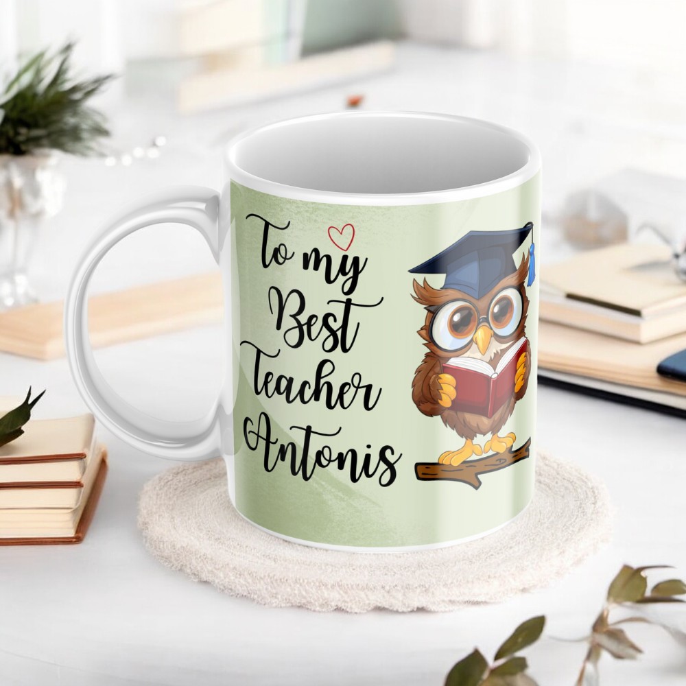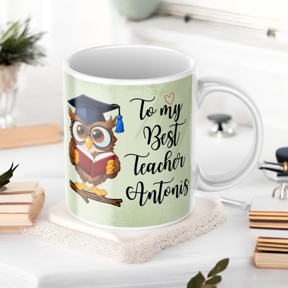 - Προσωποποίηση: Προσθέστε το όνομα του αγαπημένου σας δασκάλου για να κάνετε την κούπα πιο προσωπική και ξεχωριστή.