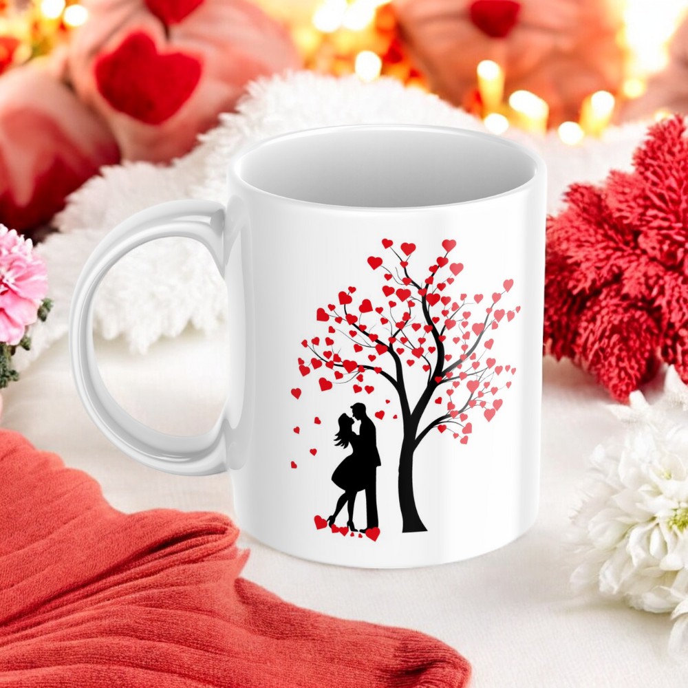 - Φόντο Ζευγάρι: Η κούπα διαθέτει ένα ρομαντικό σχέδιο που απεικονίζει ένα ζευγάρι αγκαλιασμένο κάτω από ένα δέντρο, δημιουργώντας μια τρυφερή και ζεστή αίσθηση αγάπης. Το μοναδικό αυτό σχέδιο αποπνέει ρομαντισμό, καθιστώντας την ιδανική επιλογή για να εκφράσετε τα βαθύτερα συναισθήματά σας. Στην πίσω πλευρά της κούπας, η φράση “Love You” προσθέτει μια λιτή αλλά ισχυρή έκφραση αγάπης, που θα συγκινήσει κάθε ρομαντική καρδιά.