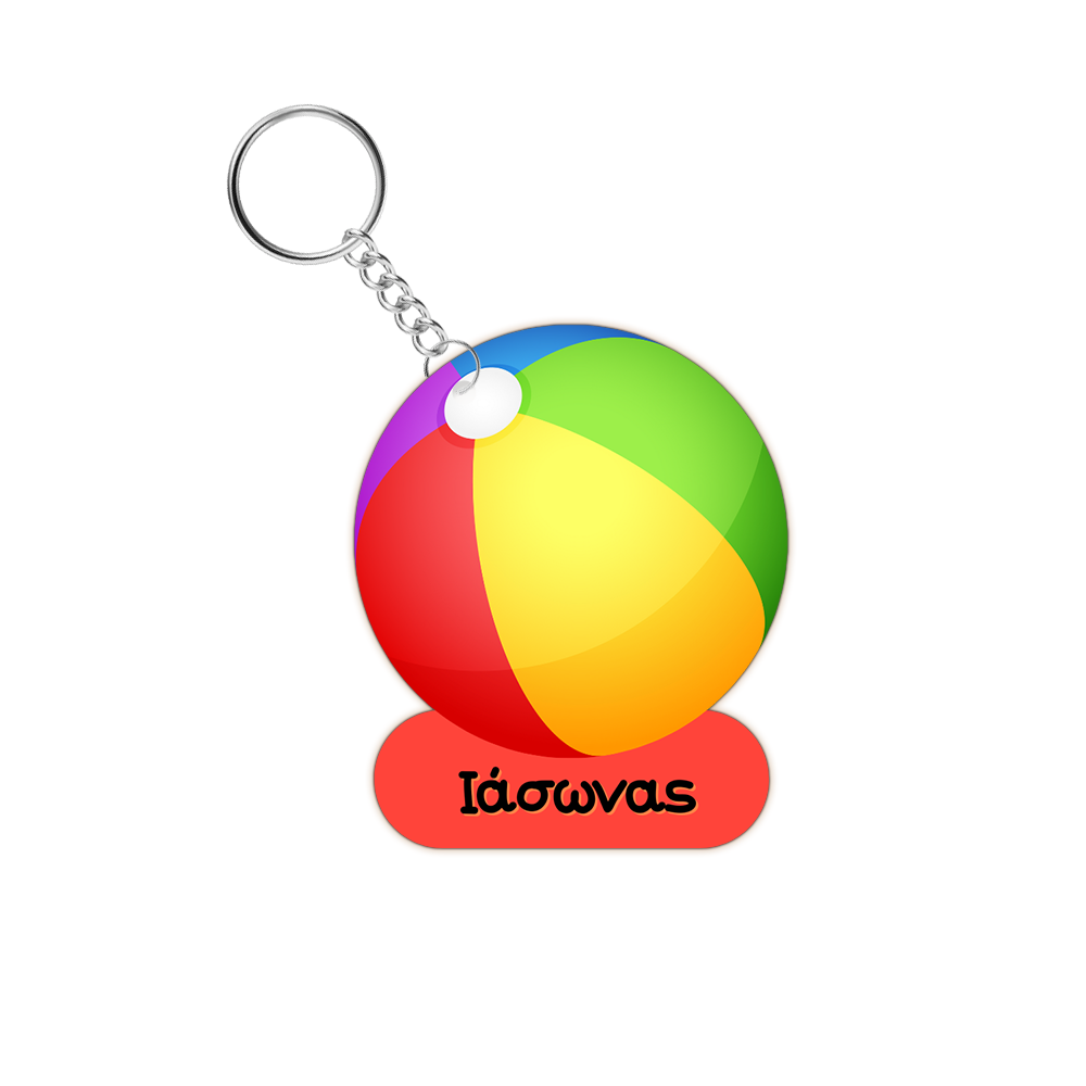 Το μπρελόκ απεικονίζει μια πολύχρωμη μεγάλη μπάλα θαλάσσης που στηρίζεται σε ένα παραλληλόγραμμο κόκκινο πλαίσιο. Τα ζωντανά χρώματα και η διασκεδαστική εικόνα του σχεδίου κάνουν το μπρελόκ ένα χαρούμενο αξεσουάρ που τα παιδιά θα λατρέψουν να έχουν μαζί τους καθημερινά.