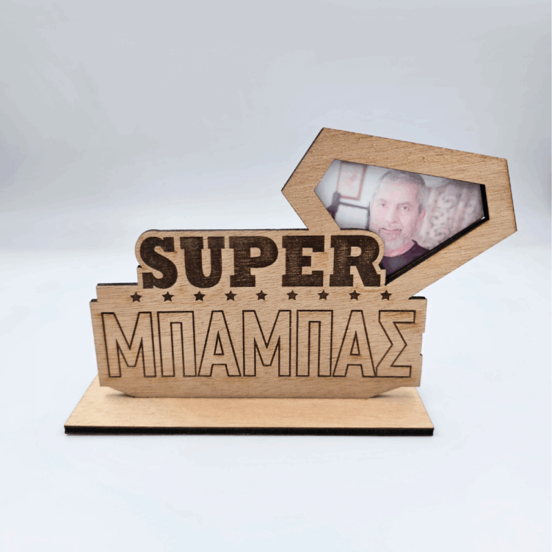 Ξύλινο Stand “Super Μπαμπάς” – Ένα Δυναμικό & Προσωποποιημένο Δώρο για τη Γιορτή του Πατέρα